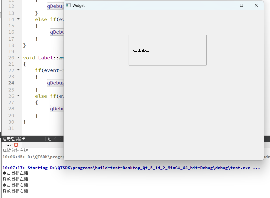 qDebug()<<"点击鼠标左键";