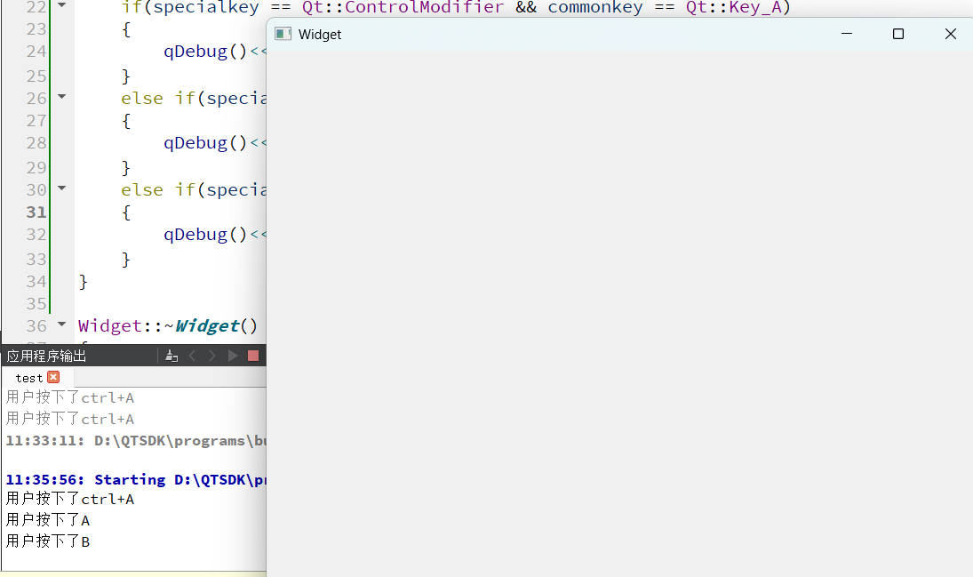 qDebug()<<"用户按下了ctrl+A";