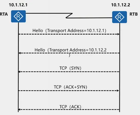 建立邻居后传输地址大的一方向传输地址小的一方发起TCP646的连接,进行LDP会话的建立