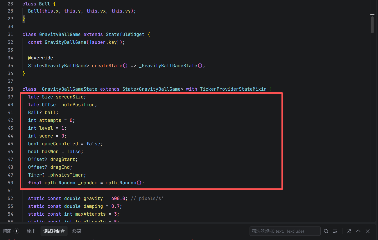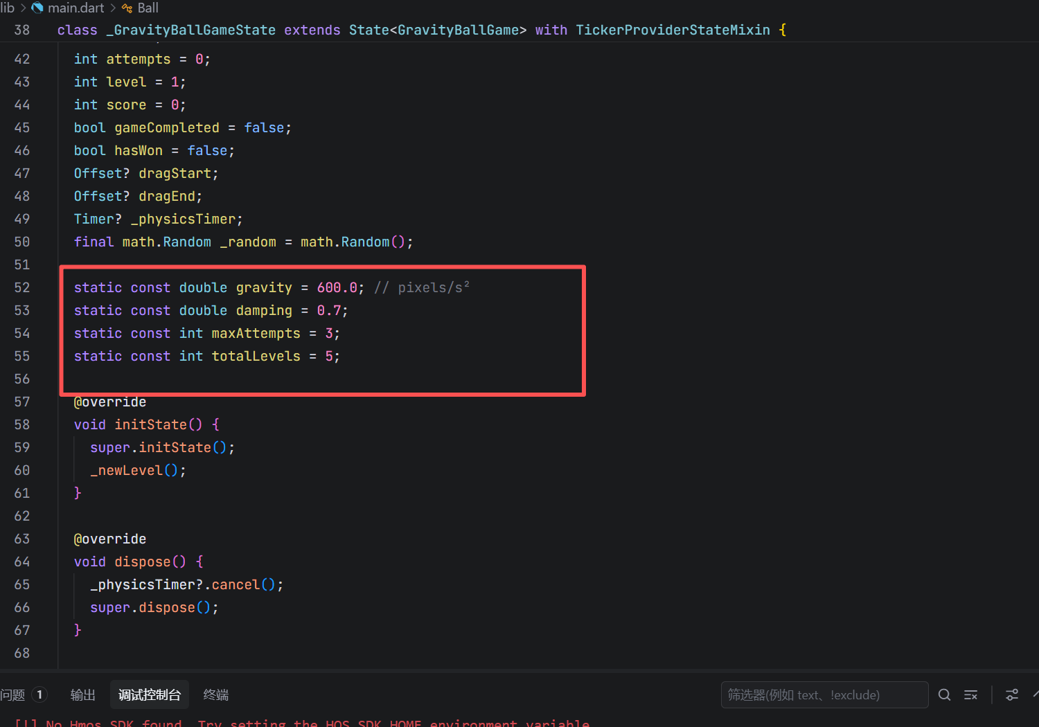 screenSize:屏幕尺寸,用于物理边界计算holePosition:洞的位置(Offset),每关随机生成ball:球对象(含位置、速度),是物理模拟的核心attempts/level/score:经典游戏三元组,提供明确目标与进度dragStart/dragEnd:手势拖拽的起止点,用于瞄准计算_physicsTimer:物理模拟定时器(~60 FPS)