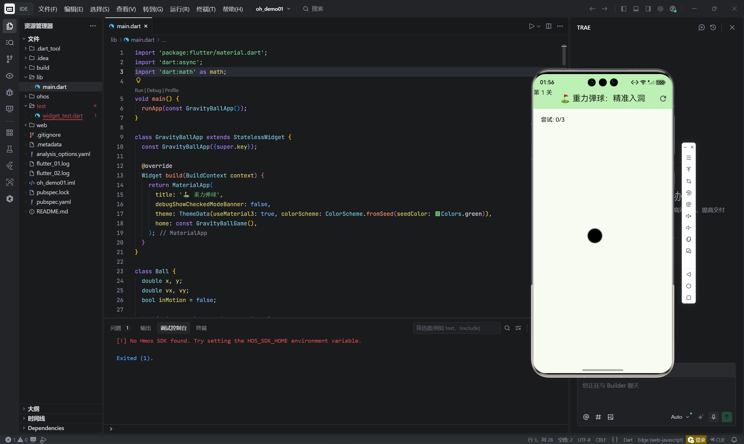本文剖析的 "重力弹球" 游戏,正是对这一现状的突破性回应。它将完整的 2D 物理模拟 (含重力、碰撞、阻尼)与精准的手势控制 (拖拽瞄准、力度反馈)融合在一个仅 250 行 Dart 代码 的轻量级应用中。玩家需通过拖拽红色小球,计算角度与力度,使其在重力作用下精准落入随机位置的黑洞。这种设计不仅极具挑战性,更直接训练了空间推理能力 (Spatial Reasoning)、物理直觉 (Physical Intuition)和决策优化能力(Decision Optimization)。