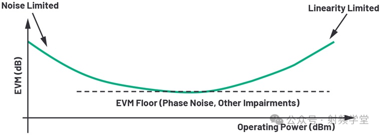 实际应用中,我们更为关注的通常是最大线性输出功率,即发射机输出的误差向量幅度(EVM)满足系统需求时的最大输出功率。