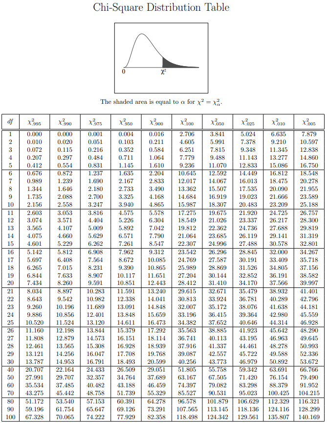 卡方分布表(chi-square distribution table),如下图所示: