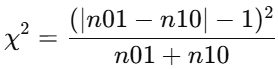 stat = (abs(n01 - n10) - 1) ** 2 / (n10 + n01)