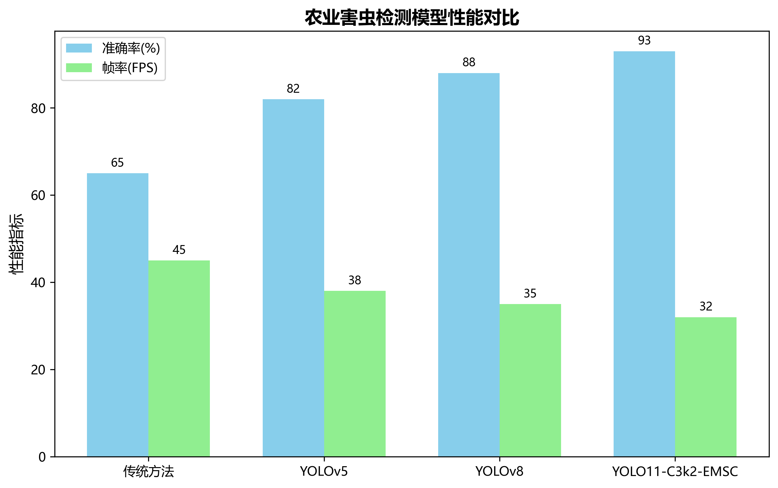 - 召回率(Recall):正确检测的害虫数占实际存在害虫数的比例
