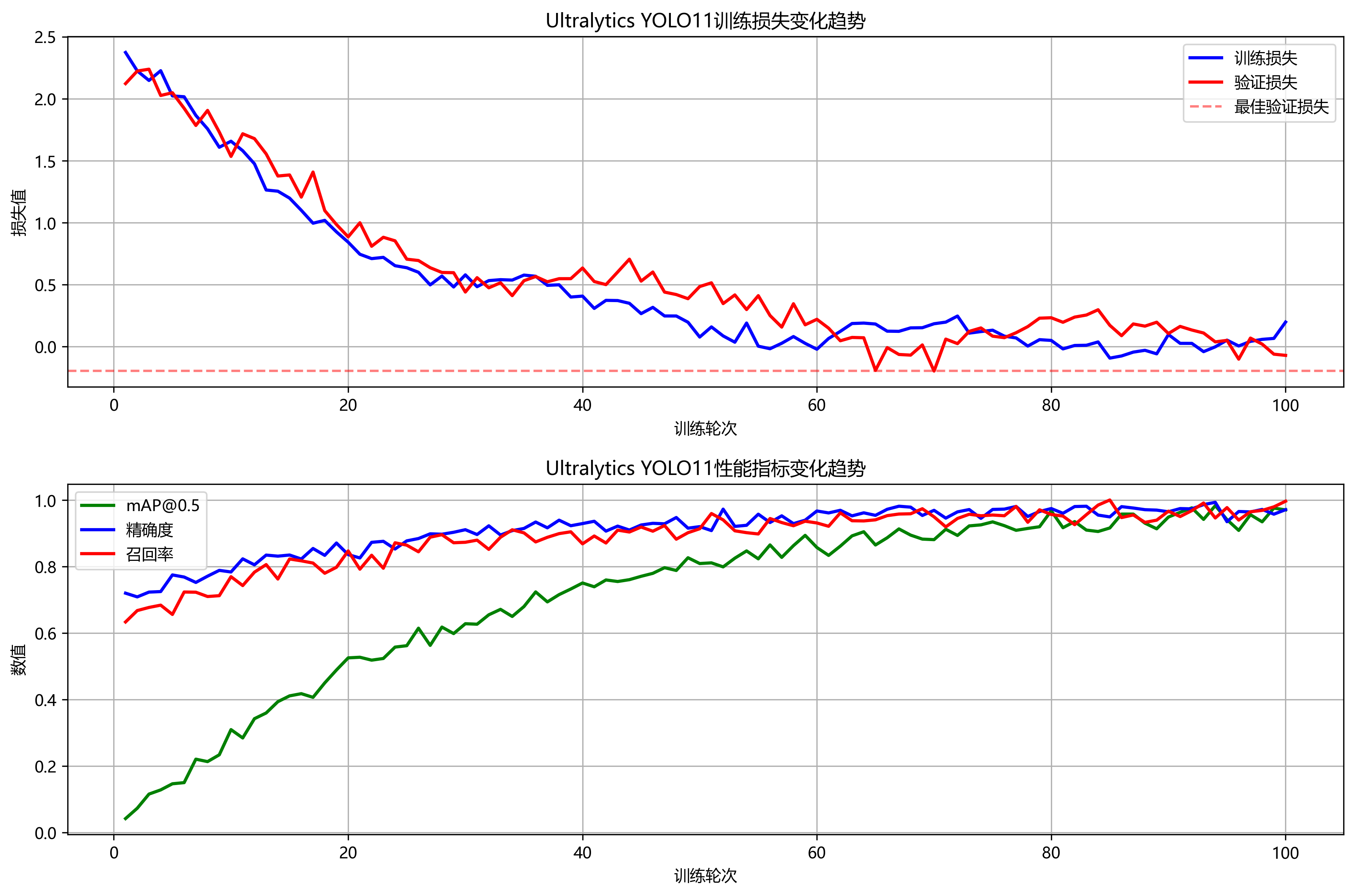 - 损失曲线:观察总损失、分类损失、定位损失的变化趋势