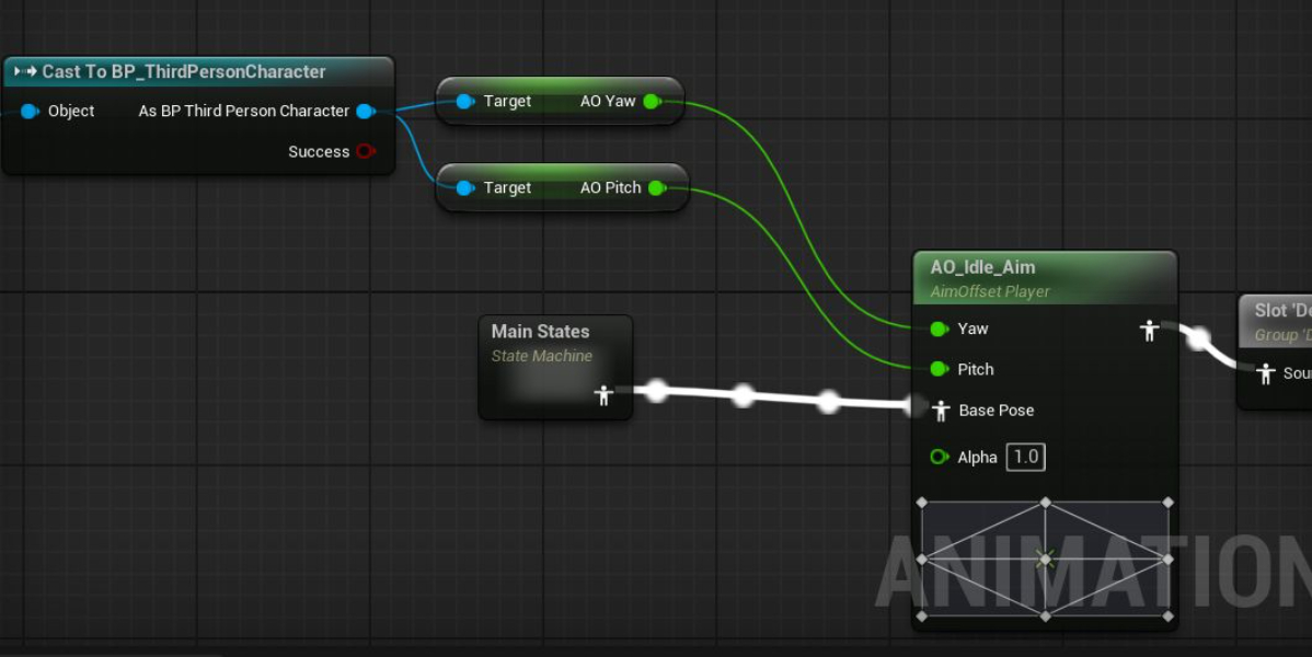 在动画蓝图中,选择合适位置,直接拖入AimOffset,并设置参数