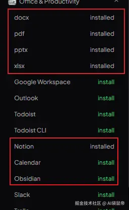 并且在海量且良莠不齐的 Claude Skills 中去芜存菁,内置了 100+ 个真正能干活的精选 Skills,全面覆盖 Office 文档、网页制作及多媒体生成等场景。
