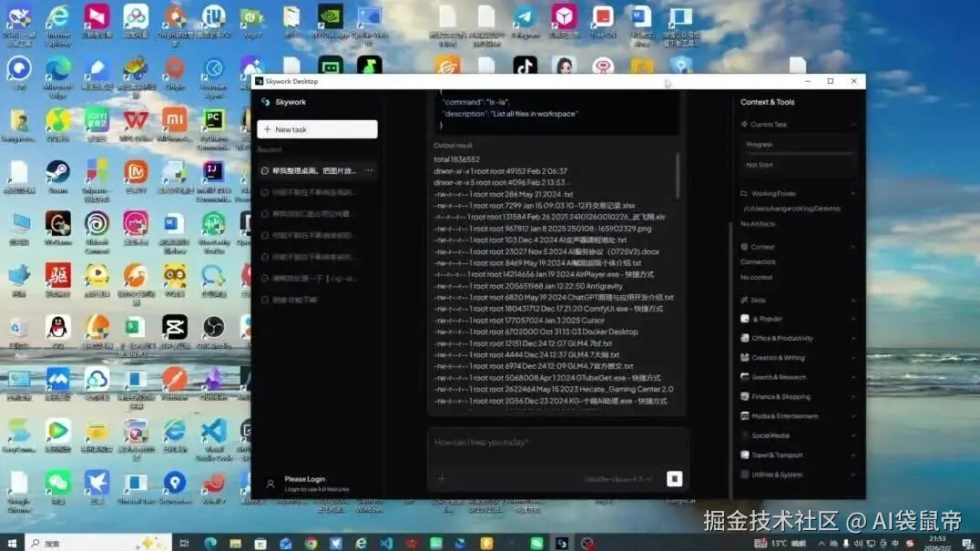 我先选择了桌面作为工作空间,然后给 Skywork 下了个指令: