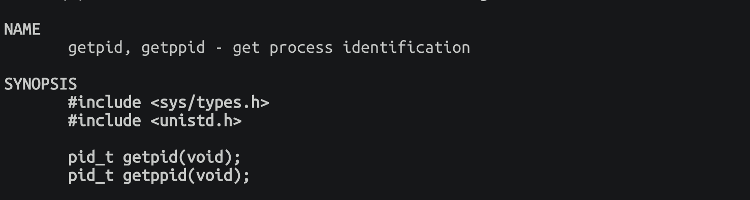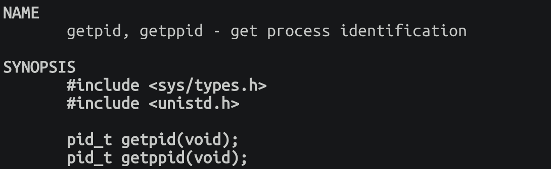 printf ("I am a process,pid %d,ppid %d\n",getpid(),getppid());