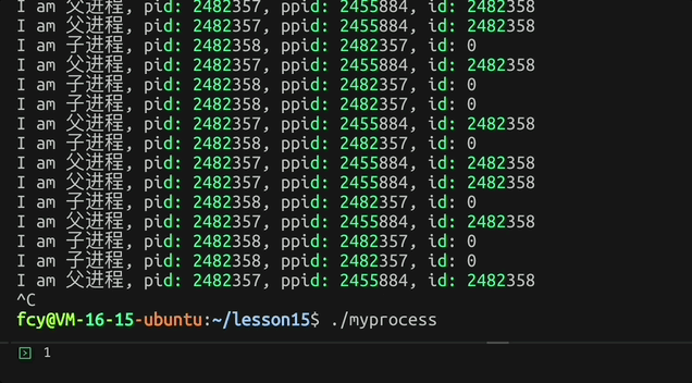 printf("I am 父进程, pid: %d, ppid: %d, id: %d\n", getpid(), getppid(), id);