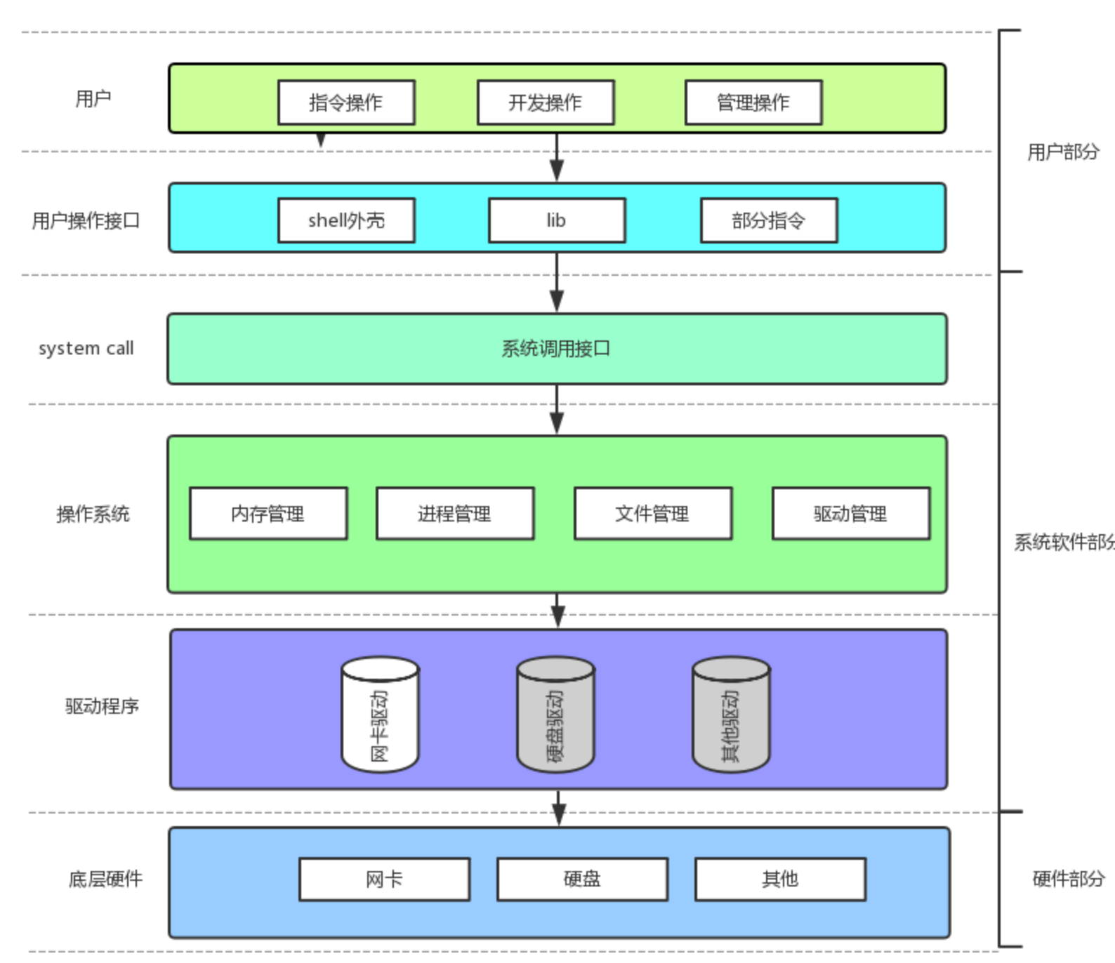 补充:每一个硬件都存在对应的驱动程序(例如网卡 需要网卡驱动程序 一般由网卡厂家写入)而操作系统就是通过这些驱动程序管理硬件