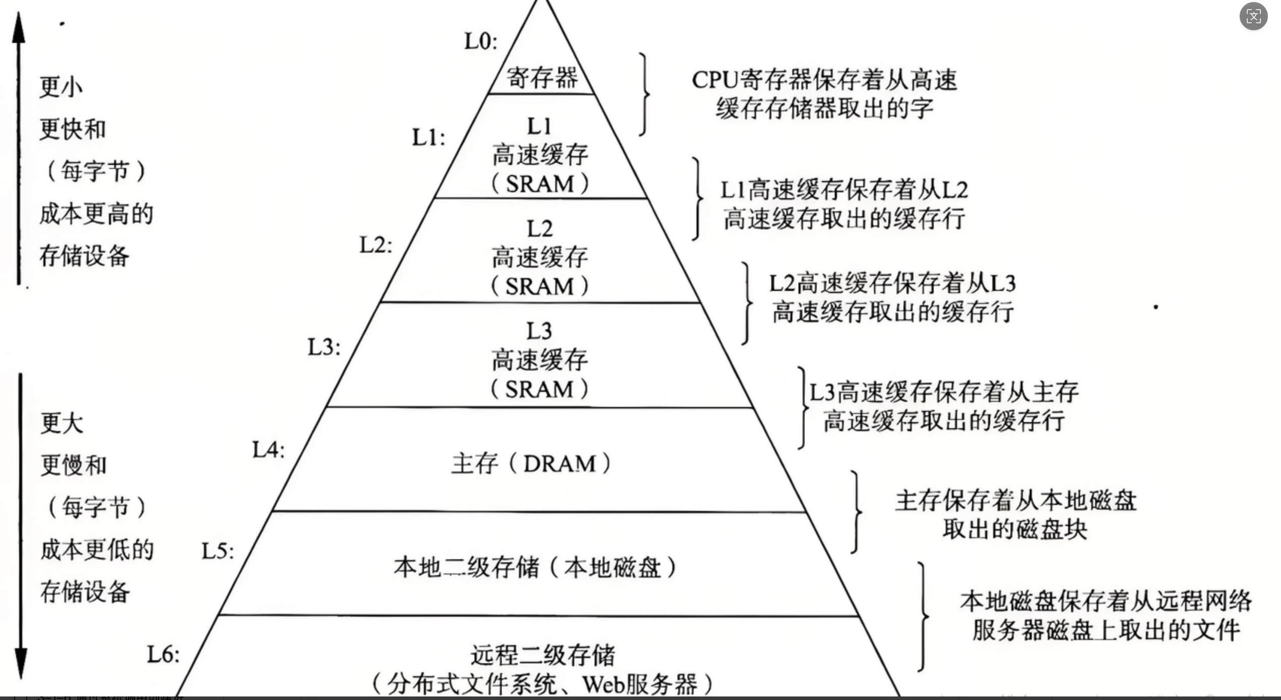 具有存储能力所对应的设备 离CPU 越近 效率越高的设备 往往容量越小造价越高 反之离CPU越远的设备 效率比较低 往往容量大造价低。