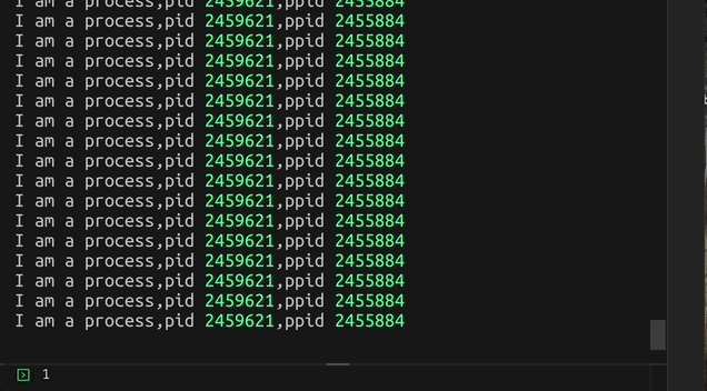 printf("我是一个进程(fork过了),pid: %d,ppid: %d\n",getpid(),getppid());