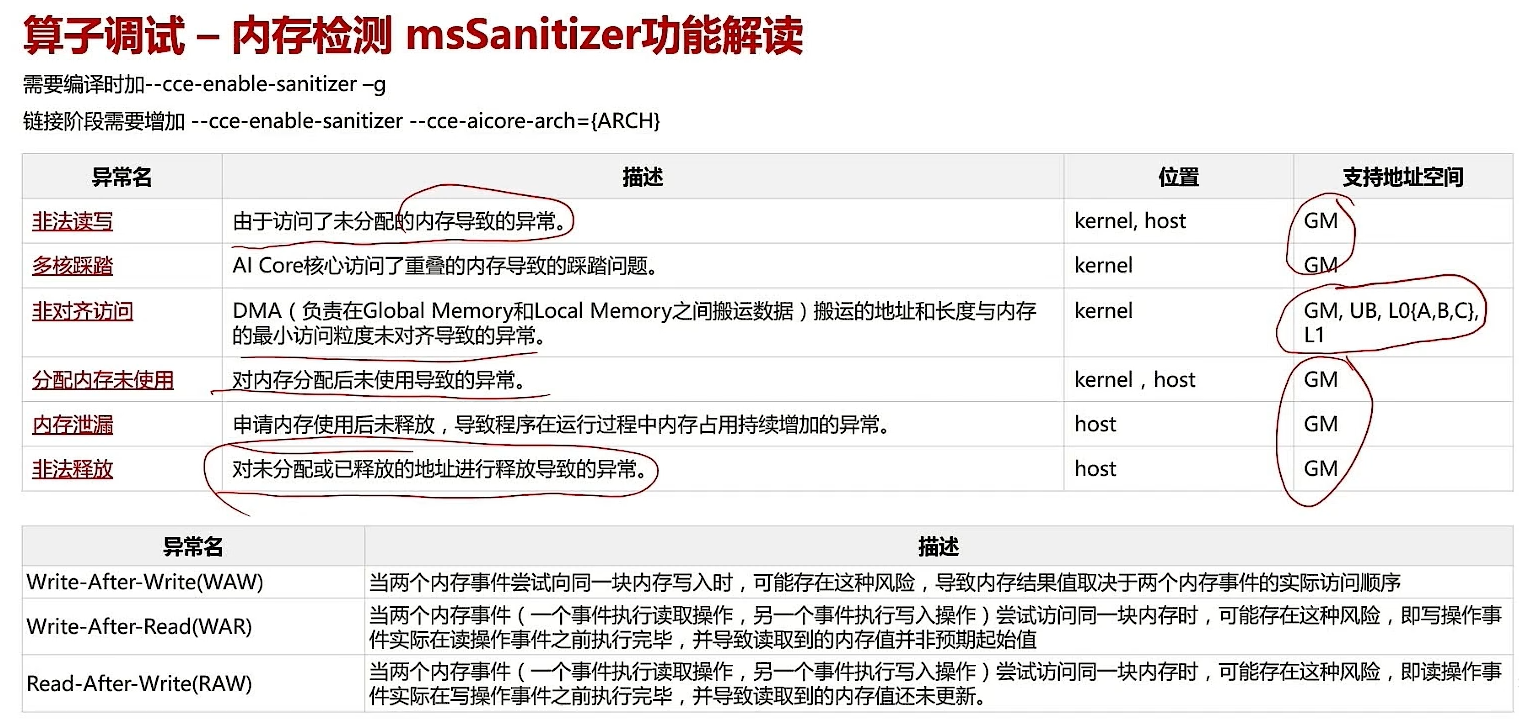 - [2.3 算子调试 - 内存检测 msSanitizer 功能介绍](#2.3 算子调试 - 内存检测 msSanitizer 功能介绍)
