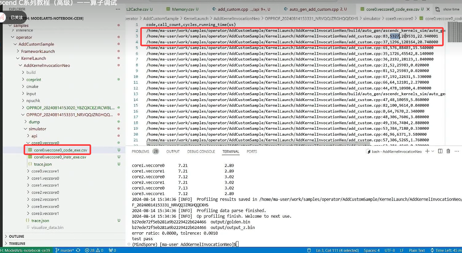 博主最近在学习华为昇腾的Ascend C的算子开发,在B站上根据教程一步步进行操作。