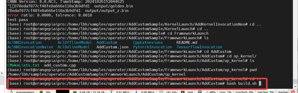 cd /home/lbh/samples/operator/AddCustomSample/FrameworkLaunch/AclNNInvocation