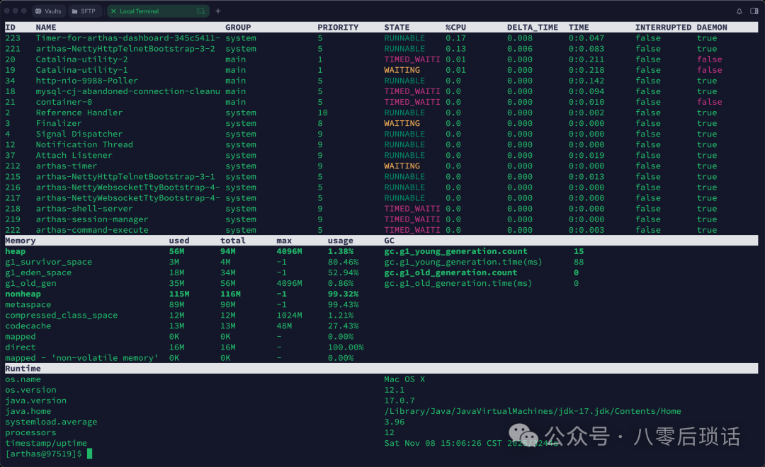 [arthas@97519]$ dashboard