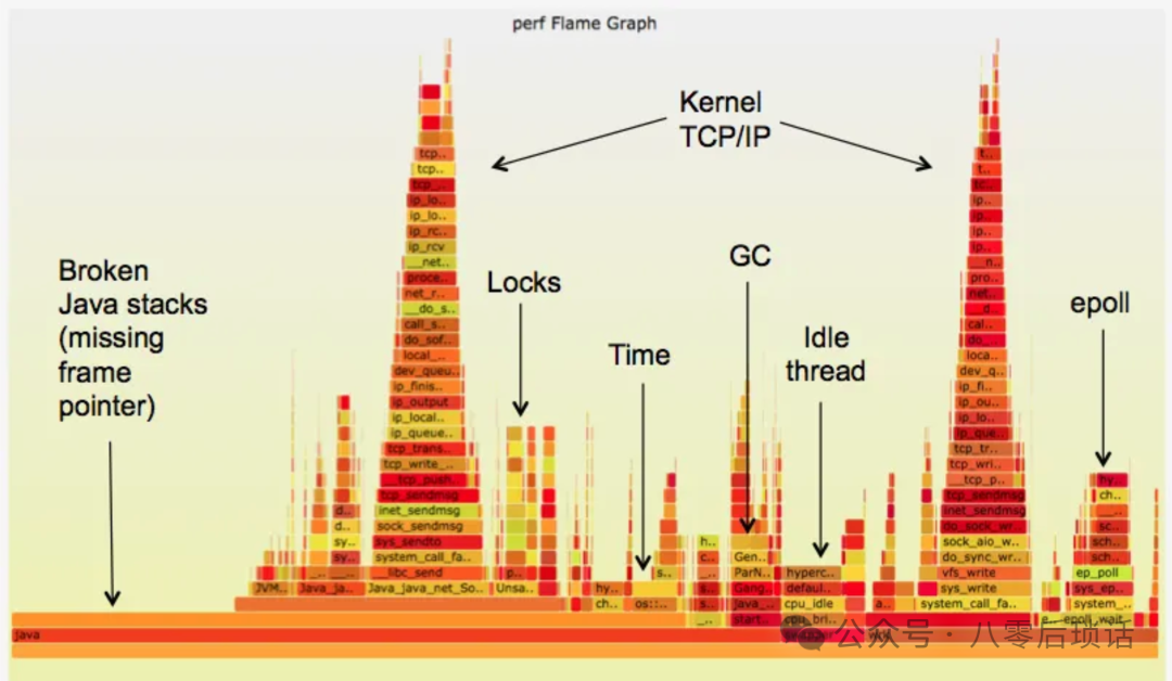 那么火焰图又是什么呢?火焰图是一种可视化性能分析工具,由Brendan Gregg发明。它之所以叫"火焰图",是因为整个图表看起来像一团火焰,它的最大价值在于直观,可以通过图形化的方式,让我们一眼就能看出哪些函数消耗的资源最多。