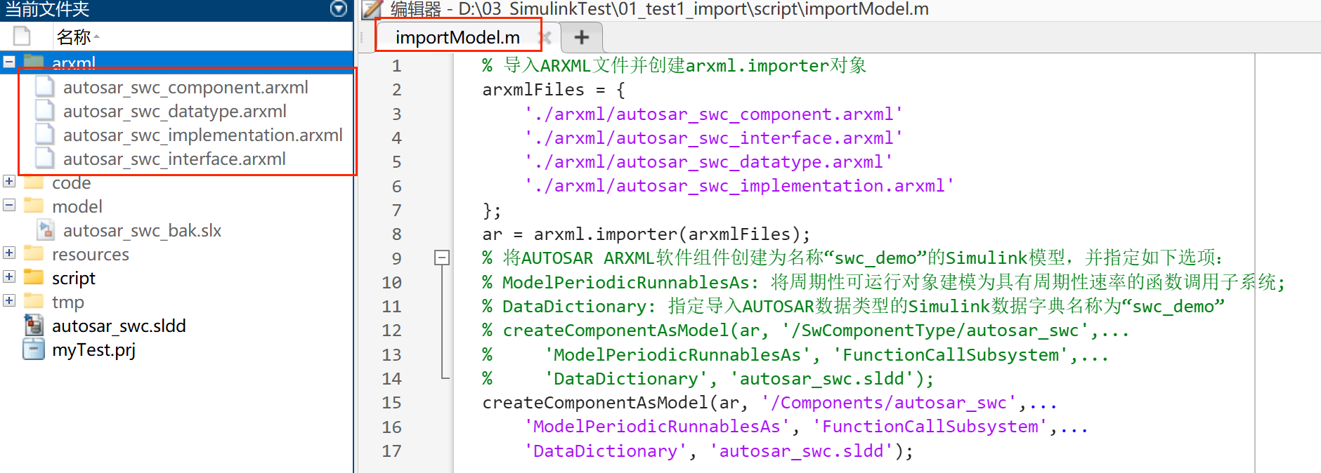 把导出的ARXML文件,放到同一个目录中,然后执行如下脚本指令