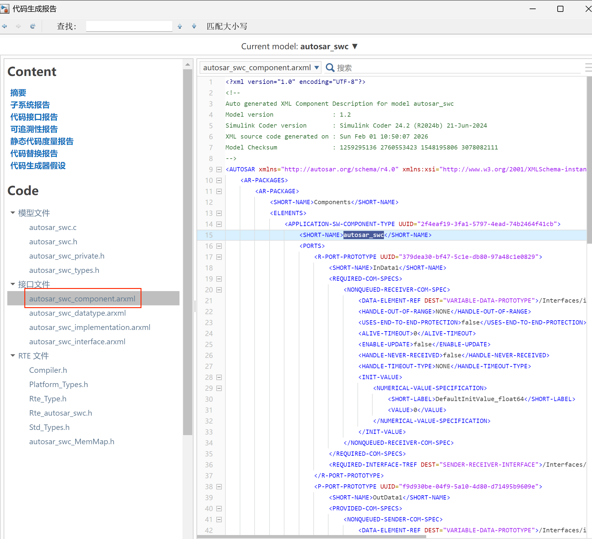 打开Simulink模型,按住Ctrl+B,执行模型编译。在生成代码的同时,会自动生成对应的ARXML文件。所在目录为: