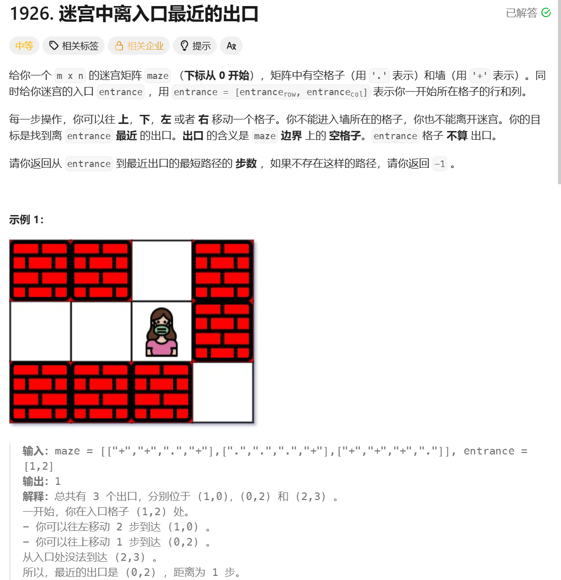 迷宫中离入口最近的出口