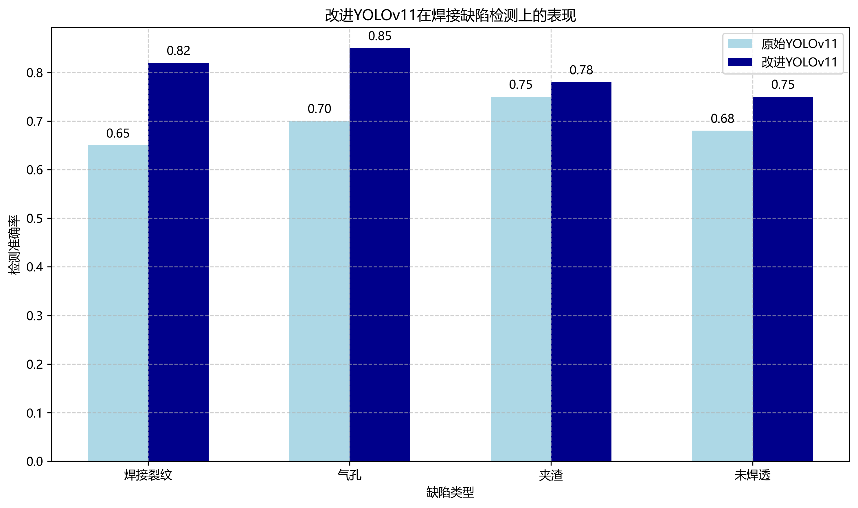 | 缺陷类型 | 原始YOLO11 mAP | 改进后 mAP | 提升幅度 |