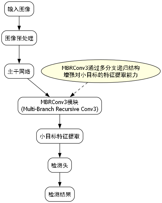 MBRConv3(Multi-Branch Recursive Conv3)是一种专为检测小目标设计的卷积模块,它通过多分支递归结构增强了对小目标的特征提取能力。