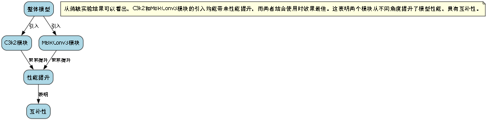 - 单独引入C3k2模块可以使mAP提升3.3个百分点,召回率提升3.1个百分点。