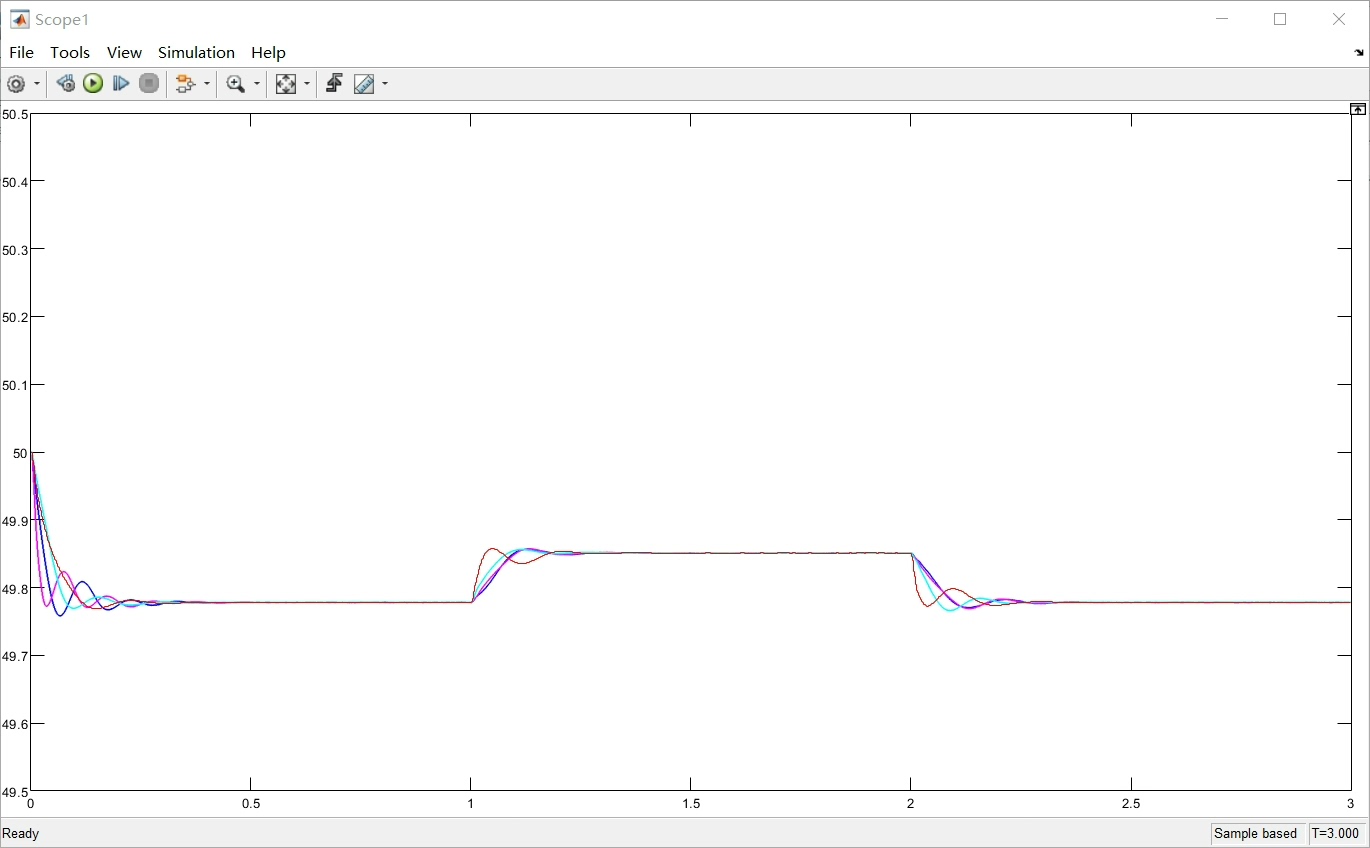 别小看这个k_d*dP,它在系统负载突变时能提前踩刹车。有次仿真突加30kW负载,传统方案频率跌了2Hz才慢慢恢复,加了微分项后波动直接压到0.5Hz以内。不过微分增益调大了容易引入噪声,实践中得做低通滤波。