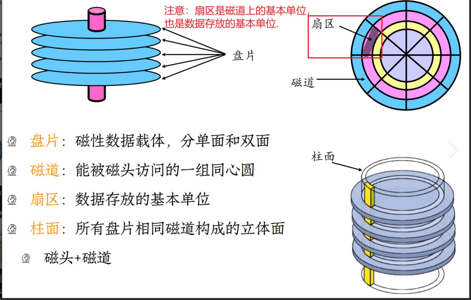 • 柱⾯和磁道都是从0开始编号的