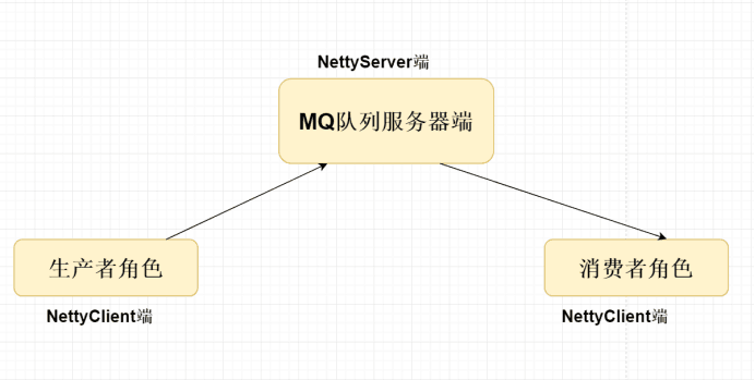 生产者netty客户端发送请求给nettyServer端MQ服务器端,MQ服务器端在将该消息内容发送给消费者。