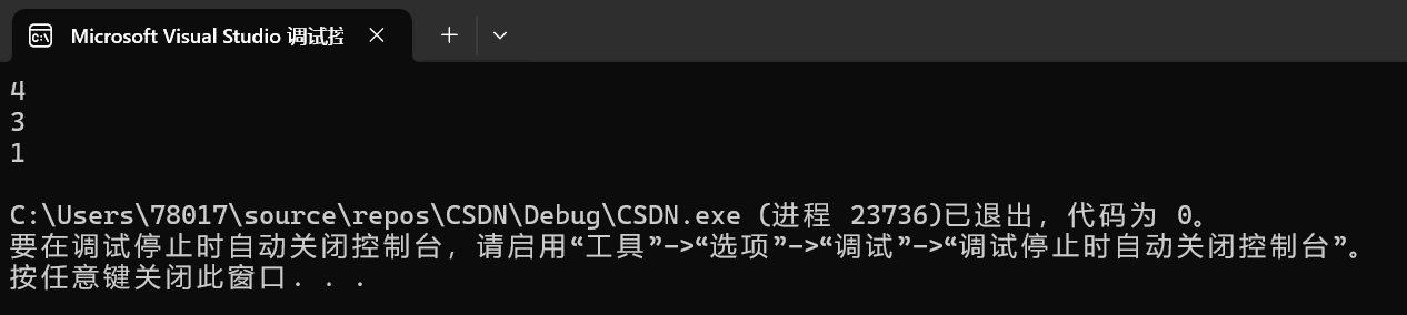**逻辑说明:**现有数据[1,2,3,4](size=4),尾删后size=3------ 此时a[3]的4仍在内存中,但size=3表示 "仅前 3 个元素有效",后续插入(如尾插5)会覆盖a[3],无需手动 "删除" 物理数据。