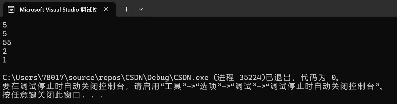 当头文件与实现文件的内容确认无误后,我们就在 Test.c 文件里面调用函数测试即可。