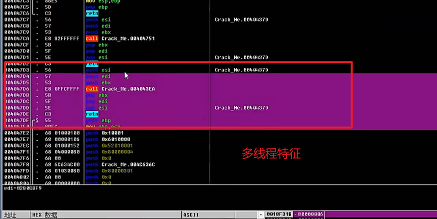 00418CDF . FFD3 call ebx 真正进行到文本 将返回值放入寄存器里 然后call 外有test + jz决定跳转