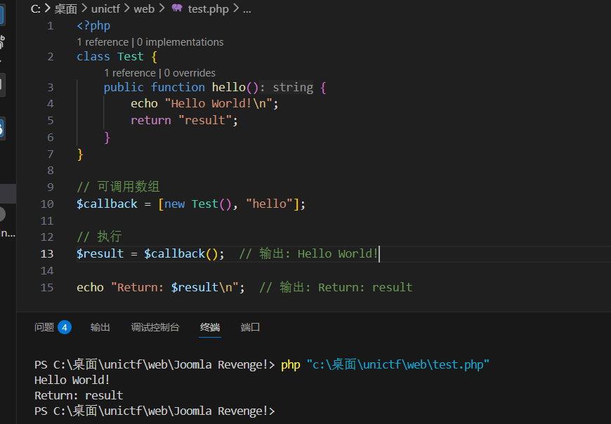 当 PHP 看到 $callback() 时,会解析数组结构: