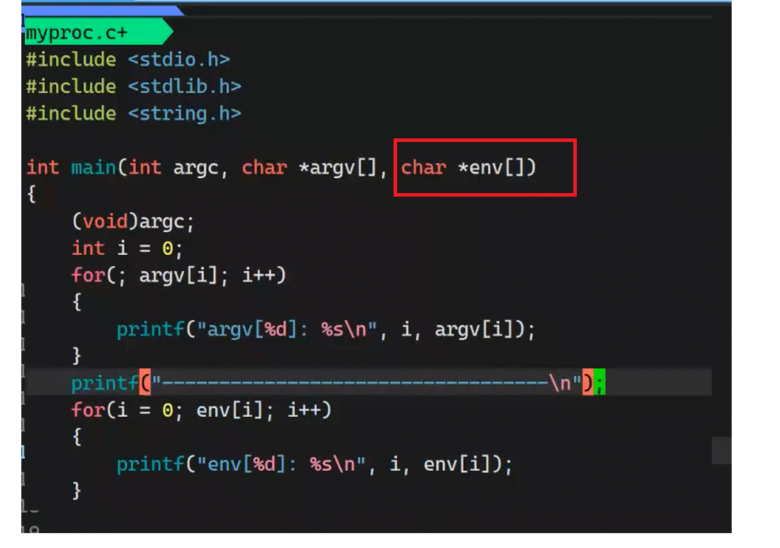 它的每一个元素 envp[0], envp[1]... 都是一个字符串,格式为 "变量名=变量值"(例如 "PATH=/usr/bin:/bin")。