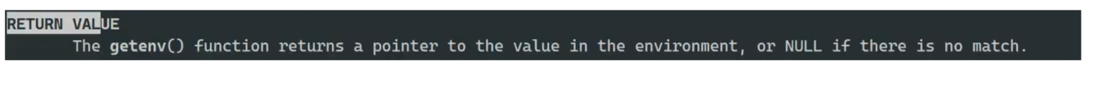 getenv()函数返回一个指向环境中对应值的指针;如果没有找到匹配项,则返回NULL