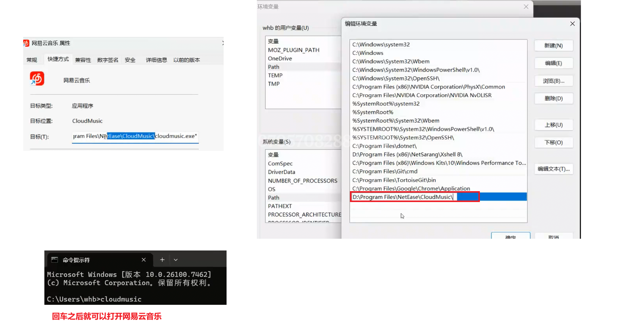 下图演示了把网易云音乐加入到命令行启动的操作过程: