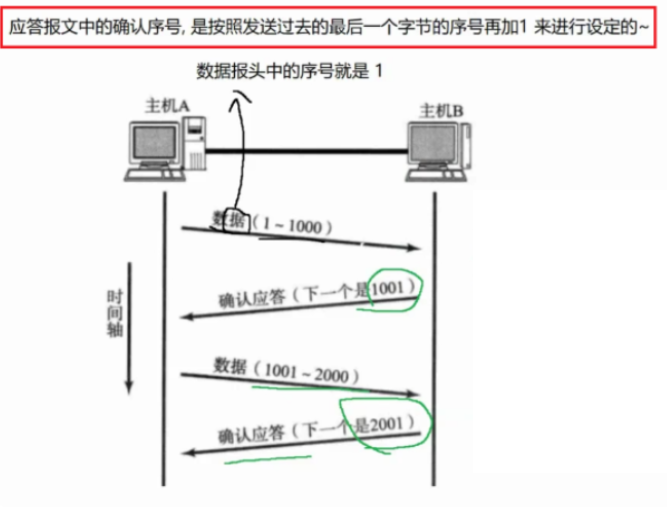 主机B收到了 1- 1000 的字节数据后,返回一个应答报文ack,应答报文中确认序号的只就是 1001