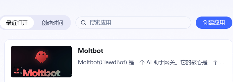 点击「创建应用」,填写应用名称(如"我的AI助手")、描述等。