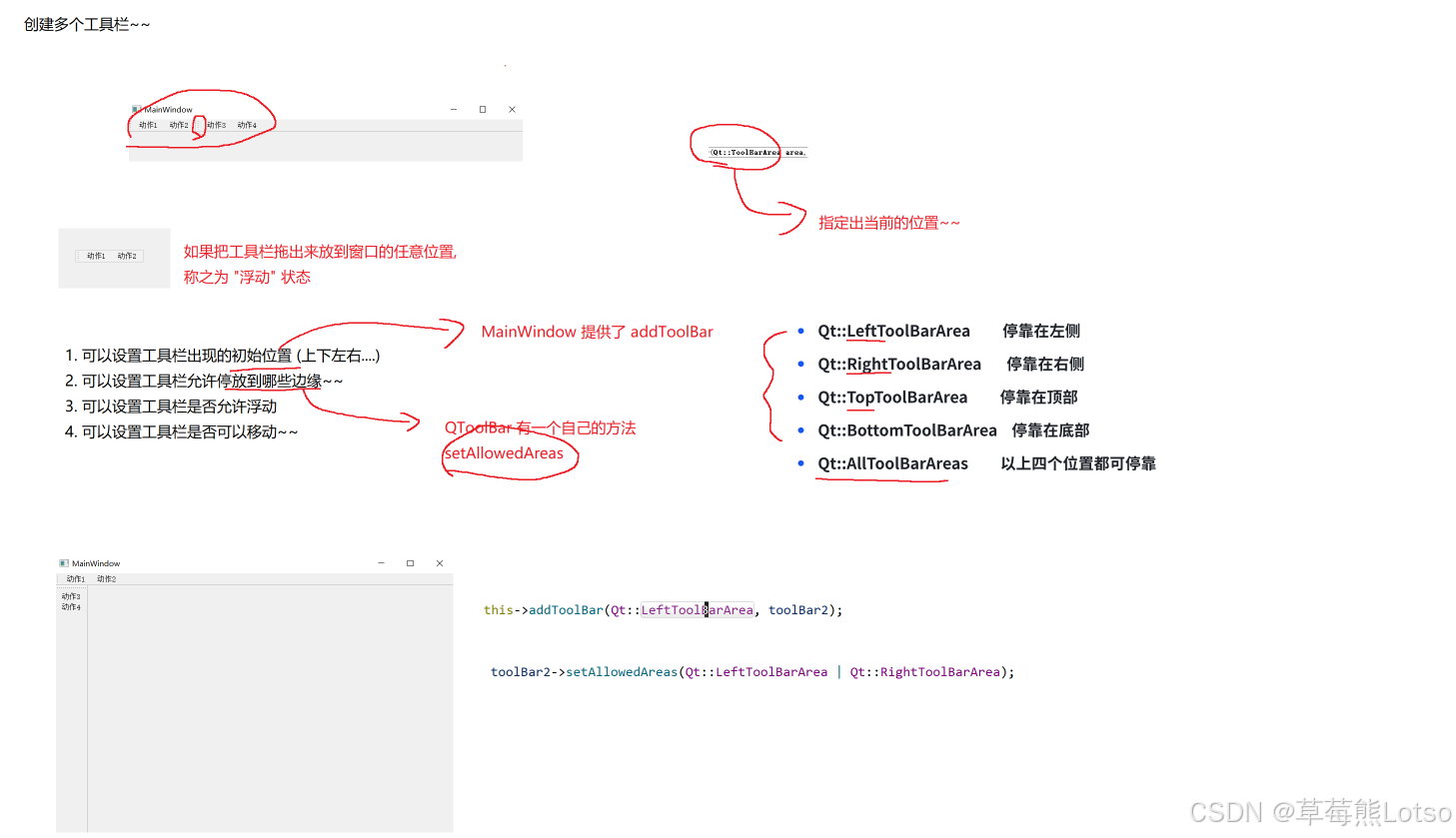 setMovable(false)会关闭移动功能,此时setAllowedAreas()也会失效,需谨慎使用;- 自定义控件(如按钮、输入框)通过