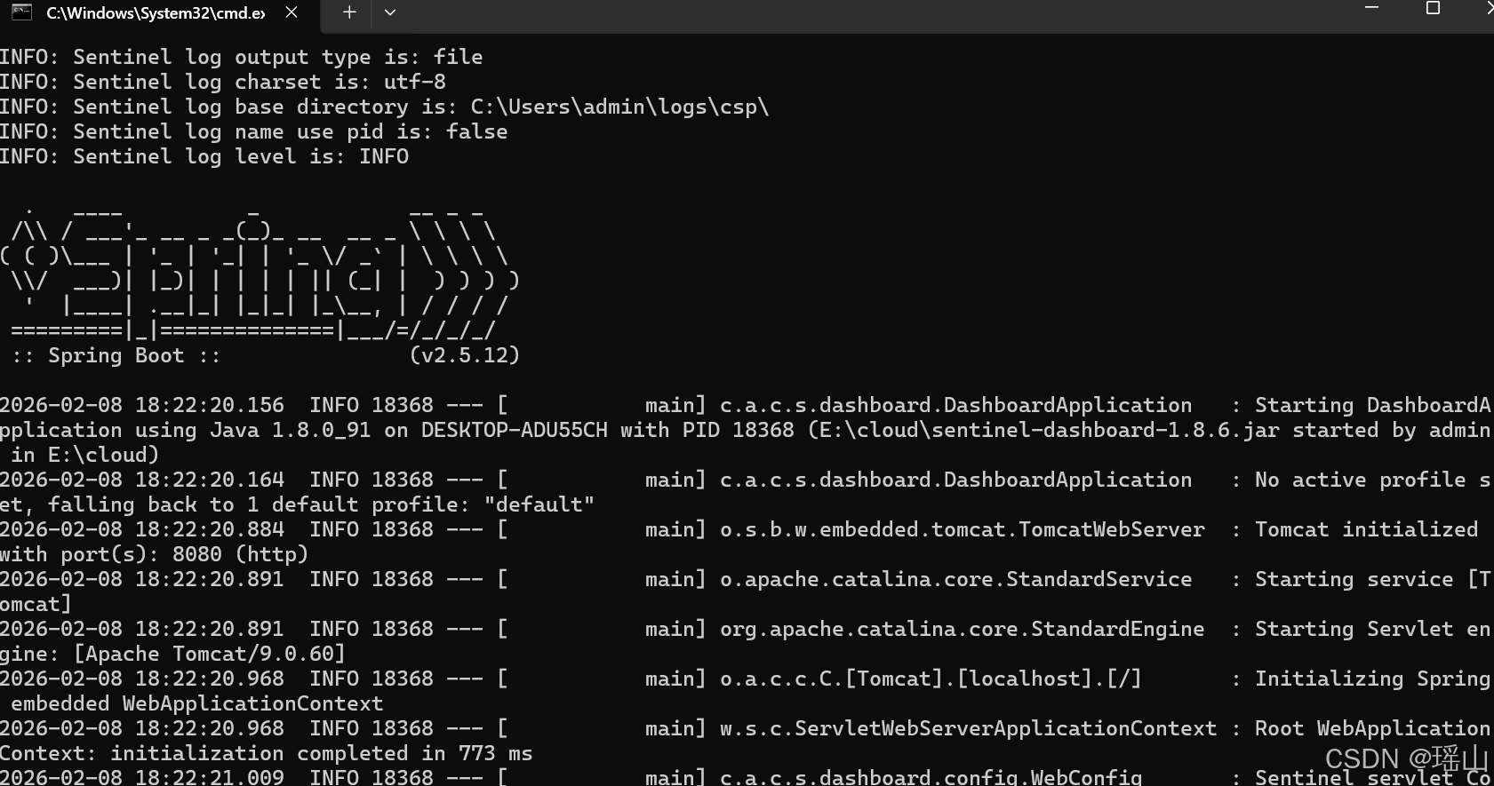 java -Dserver.port=8080 -Dcsp.sentinel.dashboard.server=localhost:8080 -Dproject.name=sentinel-dashboard -jar sentinel-dashboard-1.8.6.jar
