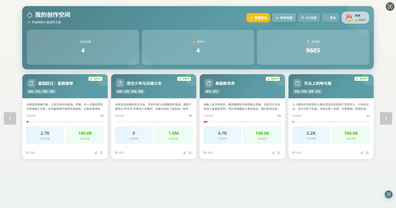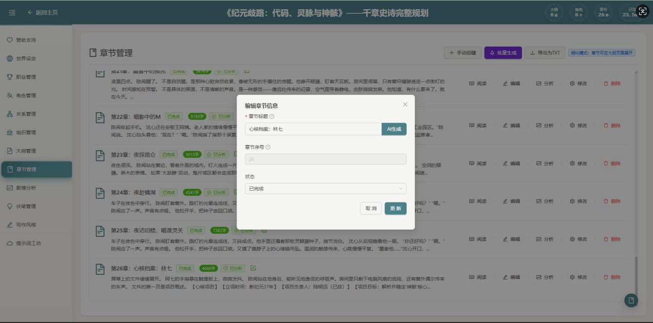 - 📖 章节编辑 - 支持创建、编辑、重新生成和润色
