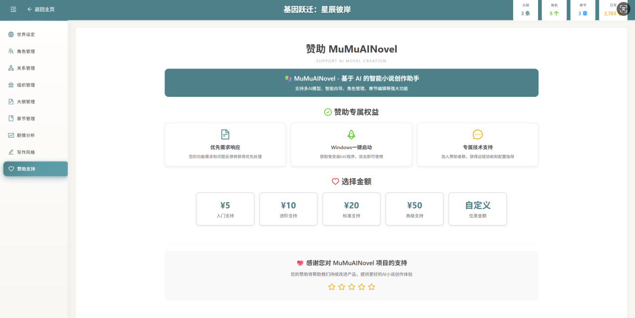 声明:感谢该官方的开源,https://github.com/xiamuceer-j/MuMuAINovel,本项目是移除docker安装,直接运行在windows环境。