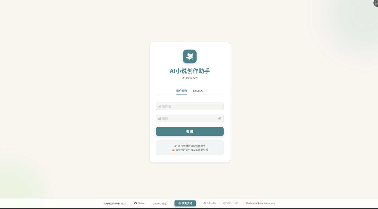 源码地址:https://github.com/Shybert-AI/MuMuAINovel-sqlite