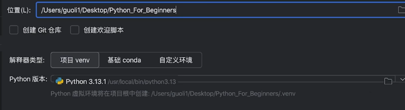 - 2 然后在pycharm中新建一个项目 将位置设置成我们新创建的文件夹即可 我的经验是 学习初期的所有文件都放在这里面 这样不仅好找 并且很简洁
