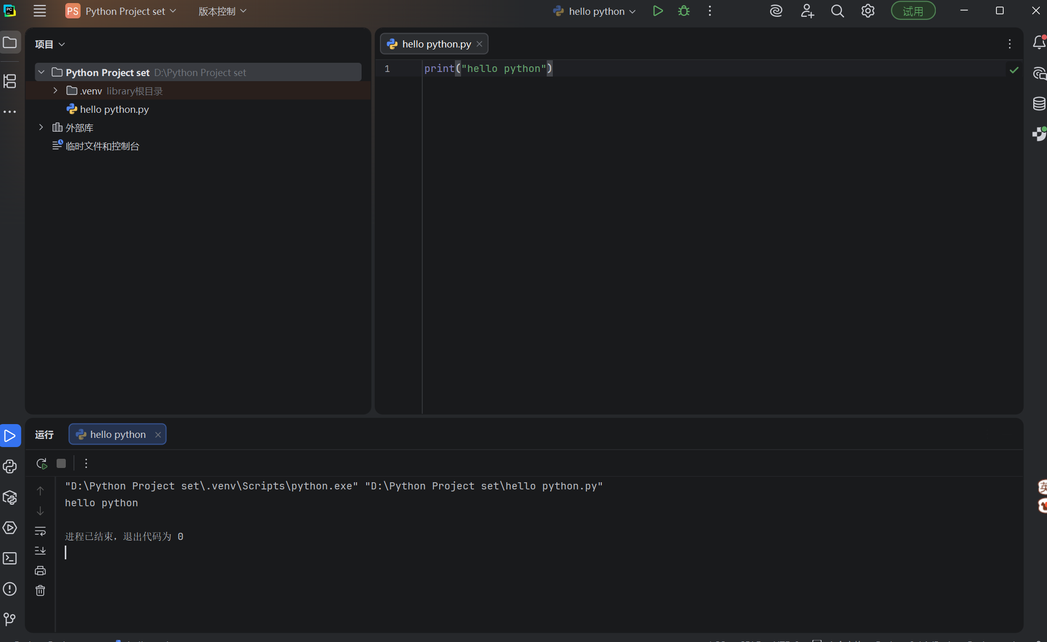 - 比如我们想要打印一个 hello python 然后右键运行即可