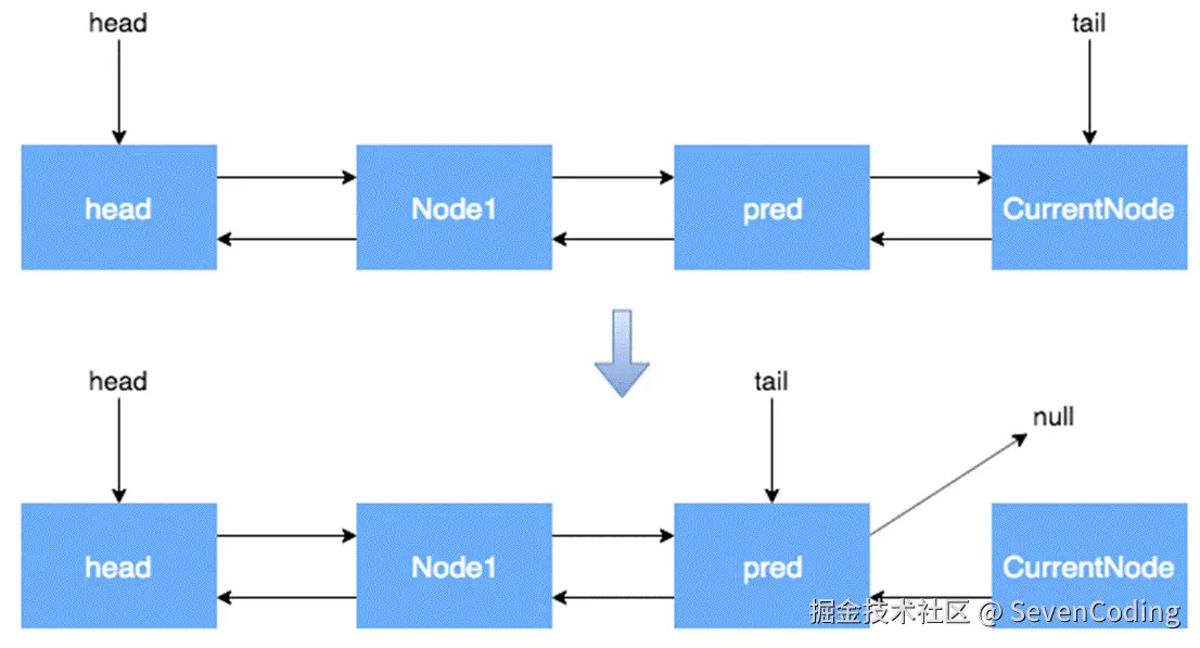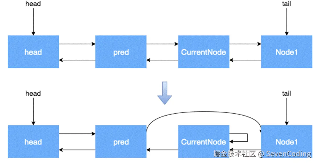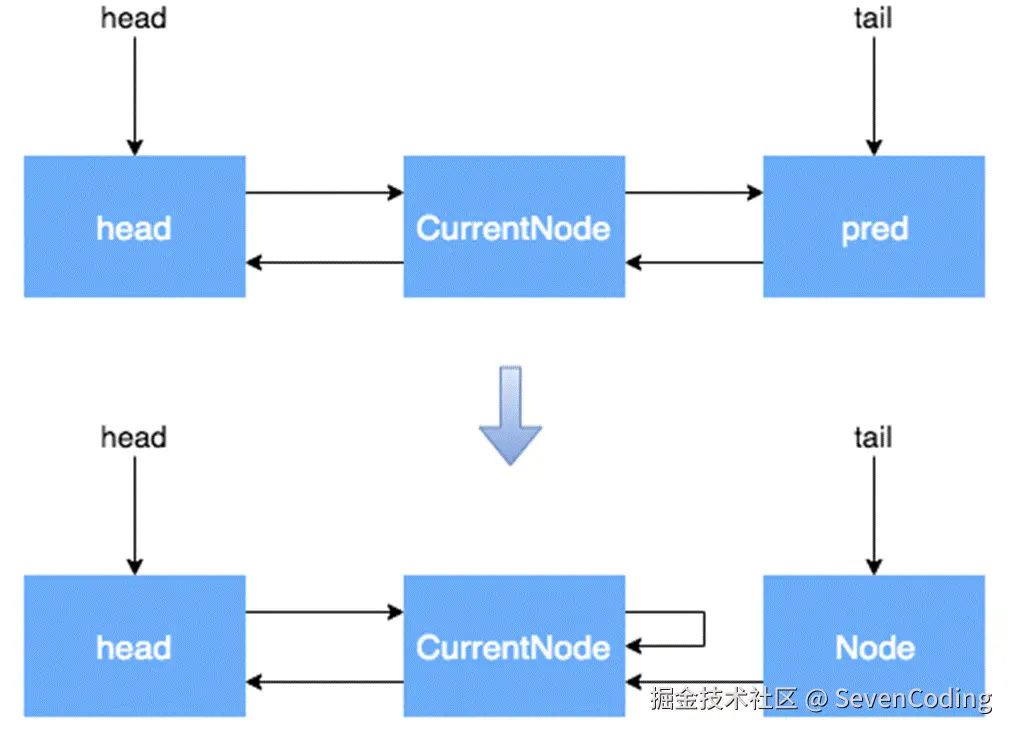 • nextWaiter:指向下一个处于CONDITION状态的节点(由于本篇文章不讲述Condition Queue队列,这个指针不多介绍)
