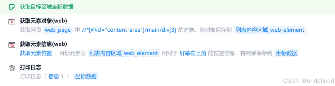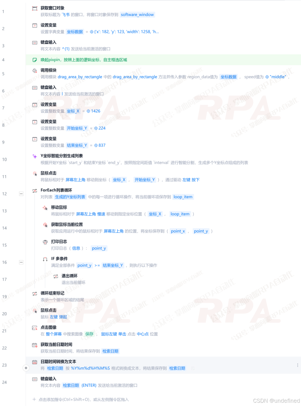桌面端 :桌面端有滚动条,但是很多时候我们很难捕获到,这里可以【基于起终点计算出离散坐标列表 ,利用'按住鼠标'配合'Foreach循环'进行分段位移 ,并通过实时比对当前Y坐标与终点Y坐标】来判断是否滚动到底,这是一种非常底层、稳定可控的方案,同样适用于网页端。
